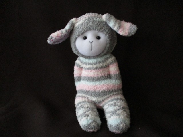Introducing the CUDDLE BUDDIE – the handmade toy that’s equal parts adorable and comforting. ASPEN is made from the softest pink/grey/sea/white striped socks. The ears are lined with a pretty print poly cotton fabric. An endearing soft toy that will remain a beloved companion for years to come.