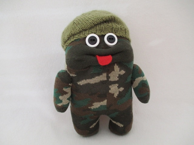 Salute this one-of-a-kind SOLDIER! Handmade from camouflage socks and wearing a hand-knitted beret, this charming military figure is the perfect gift for any army enthusiast. A unique, personalized gift for army fans