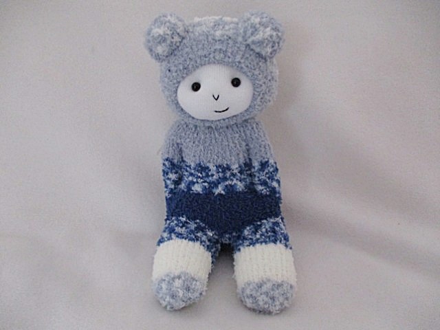 Snuggle up with this CUDDLE BUDDIE! This one-of-a-kind toy is handmade from the coziest, softest blue/white/grey socks. It offers endless comfort and happiness. This charming soft toy will stay a cherished companion for years ahead.