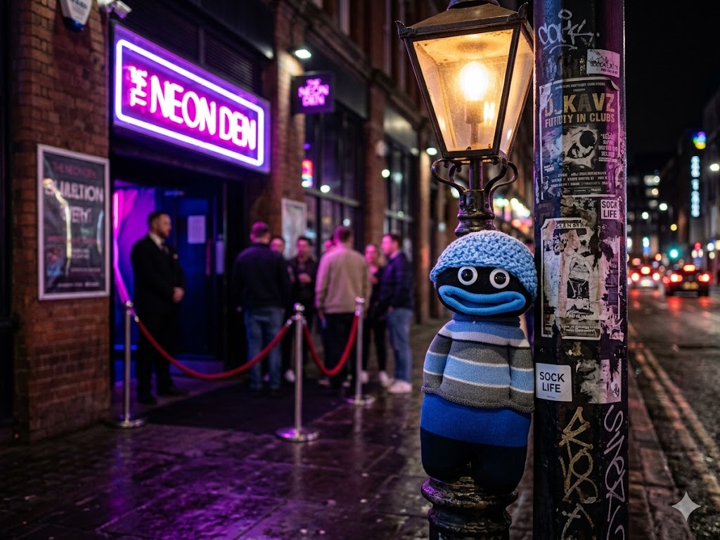 Say hello to this cheerful little creation made entirely from blue/grey/white striped socks. A delightful handmade toy designed to spread smiles wherever it goes. Each SOCKIE is lovingly crafted with care, combining creativity, colour, and character in one fun-sized friend.