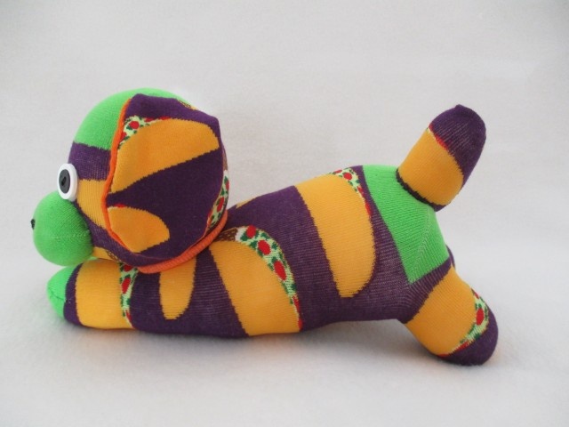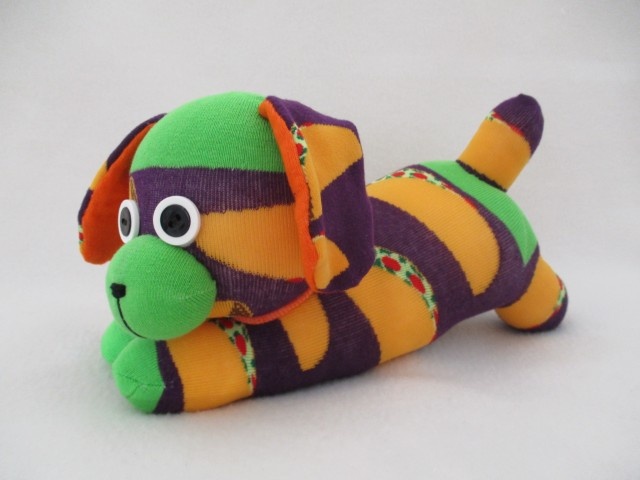This delightful playmate is an ideal companion for your little one ? Handmade from purple socks with a taco pattern on them. An adorable companion for any dog lover.