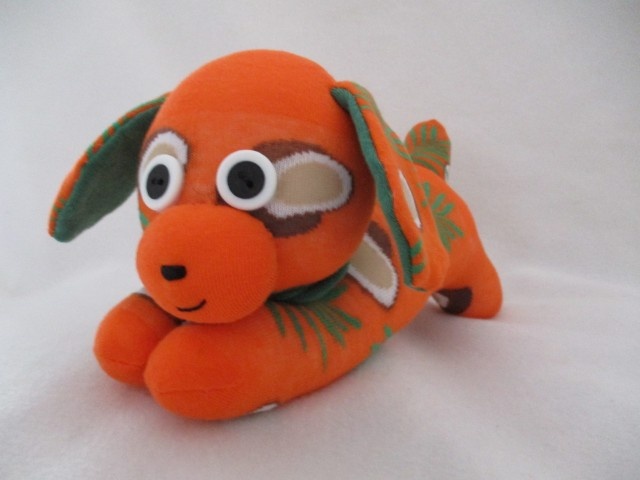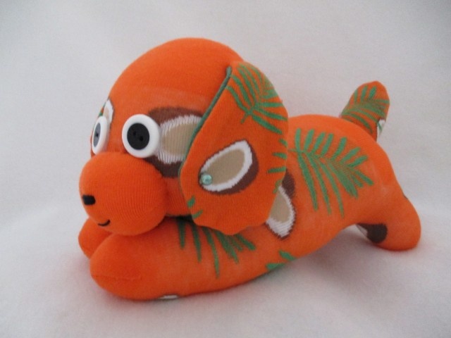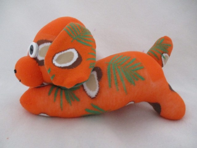 Lovingly handmade from orange socks with pictures of coconuts on them. Each puppy boasts a distinct personality, making it a one-of-a-kind gift for any dog enthusiast.