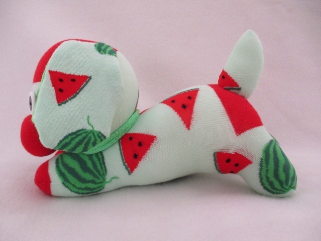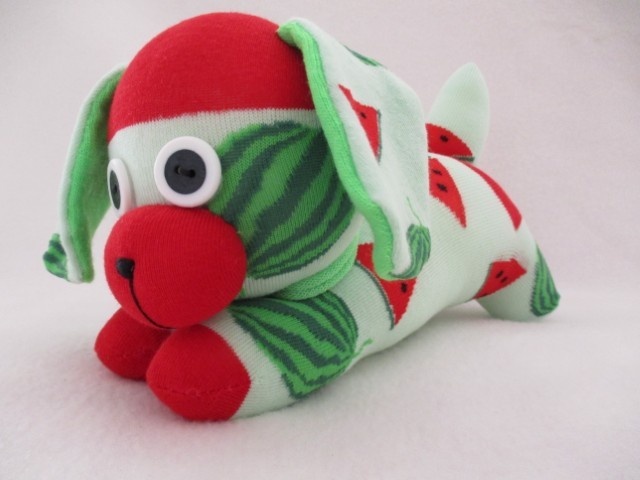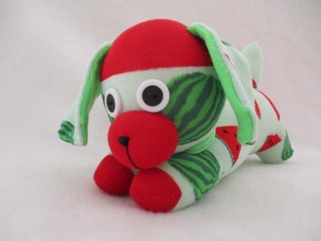 If you’re shopping for a child’s birthday or looking to surprise a dog lover, this sock puppy is an irresistible choice. RUBY is made from pale green socks with a melon print. She will add a special touch of charm and love to any occasion. Let this adorable creation become a beloved member of your family!