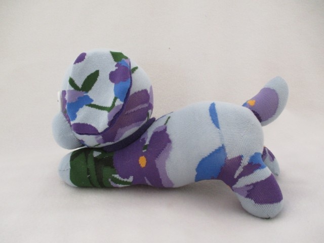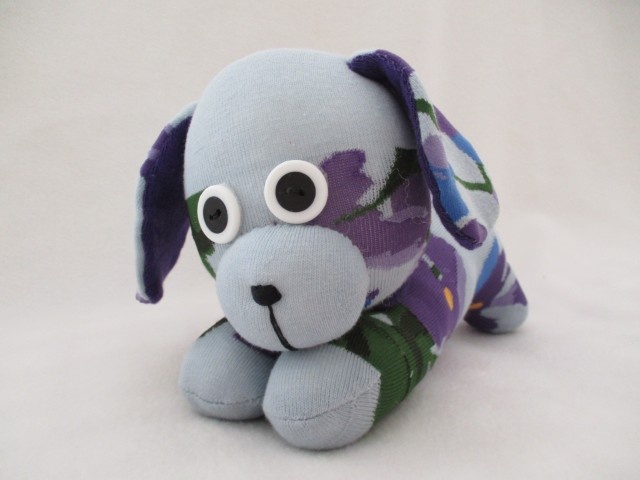 Handcrafted with care from blue socks with a floral pattern, each puppy has its own unique personality, making it a truly special present for any dog lover.